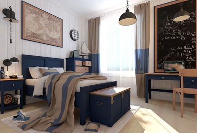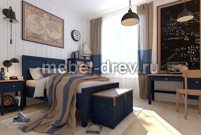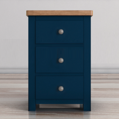 Небольшая тумба из коллекции для детской комнаты Жюль Верн. Коллекция выкрашена в благородный оттенок темно-синего цвета, в сочетании с цветом орех. Темно-синий оттенок мебели обладает изысканностью и стилем-он уместен в любом помещении и в любом цветовом сочетании, подойдет и для взрослой спальни и для детской комнаты. Тумба с тремя выдвижными ящиками, подойдет как прикроватная тумба, а также, как тумба к письменному столу.