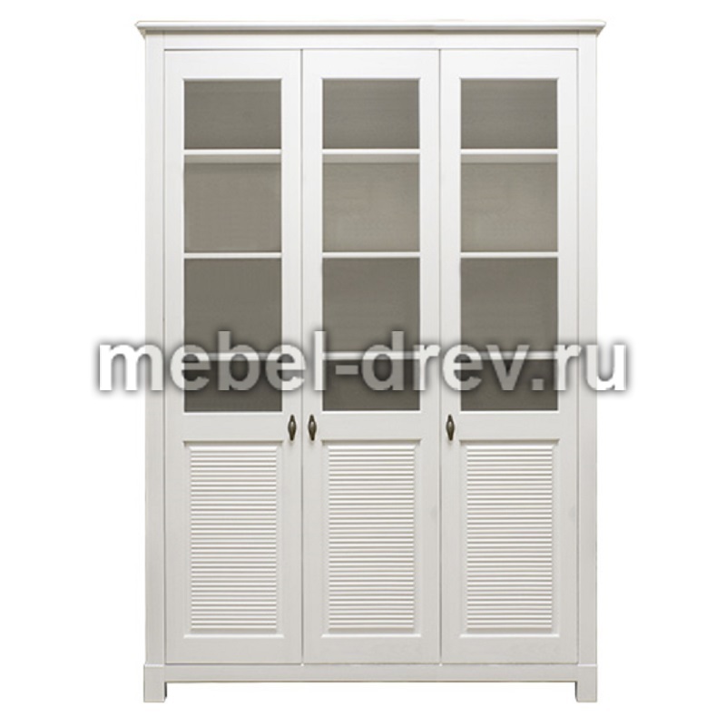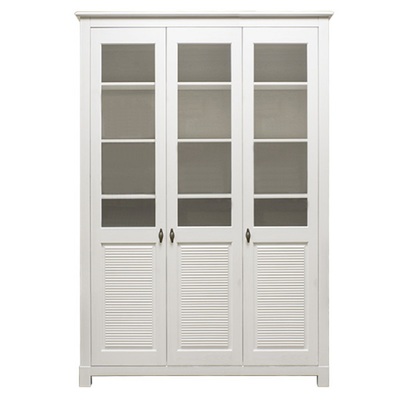 Шкаф-стеллаж Рауна с тремя распашными дверцами. Стеллаж изготовлен из натурального дерева, массива сосны. Мебель Рауна отличают прямые, строгие линии, правильные геометрические формы. Мебель из сосны экологически чистая и долговечная, выкрашена в легкий, воздушный белый цвет. При окрашивании используются лакокрасочные материалы на водной основе, которые сохраняют натуральный вид древесины. Данный стеллаж можно приобрести или отдельно или со стеклянными распашными дверцами.
