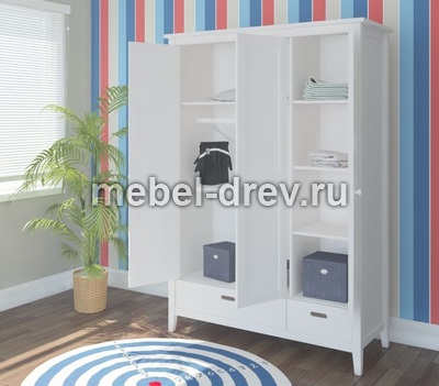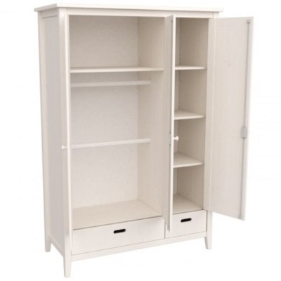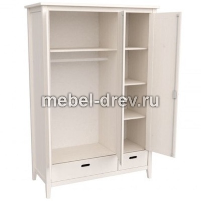 Большой вместительный шкаф из коллекции Сиело белорусской фабрики ММЦ. Шкаф с распашными дверцами, изготовлен из натурального дерева, массива сосны. Мебель коллекции Сиело обработана пропиткой на основе воска. Такое покрытие обладает водоотталкивающим эффектом и повышает износостойкость древесины. Благодаря экологически чистым материалам, мебель из коллекции Сиело идеально подходит для детской комнаты. Внутреннее наполнение шкафа: За распашными дверями одно большое сдвоенное отделение со штангой и шляпной полочкой, с правой стороны за распашной дверцей полочки для белья. Снизу 2 выдвижных ящика на направляющих: 1 малый и 1 большой. Можно поставить дополнительные полки Сиело 77356, уменьшив часть шкафа со штангой.