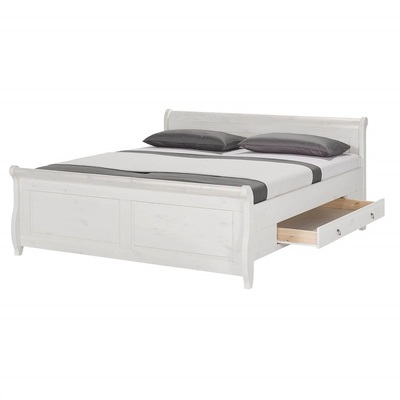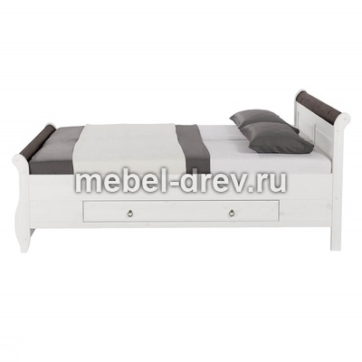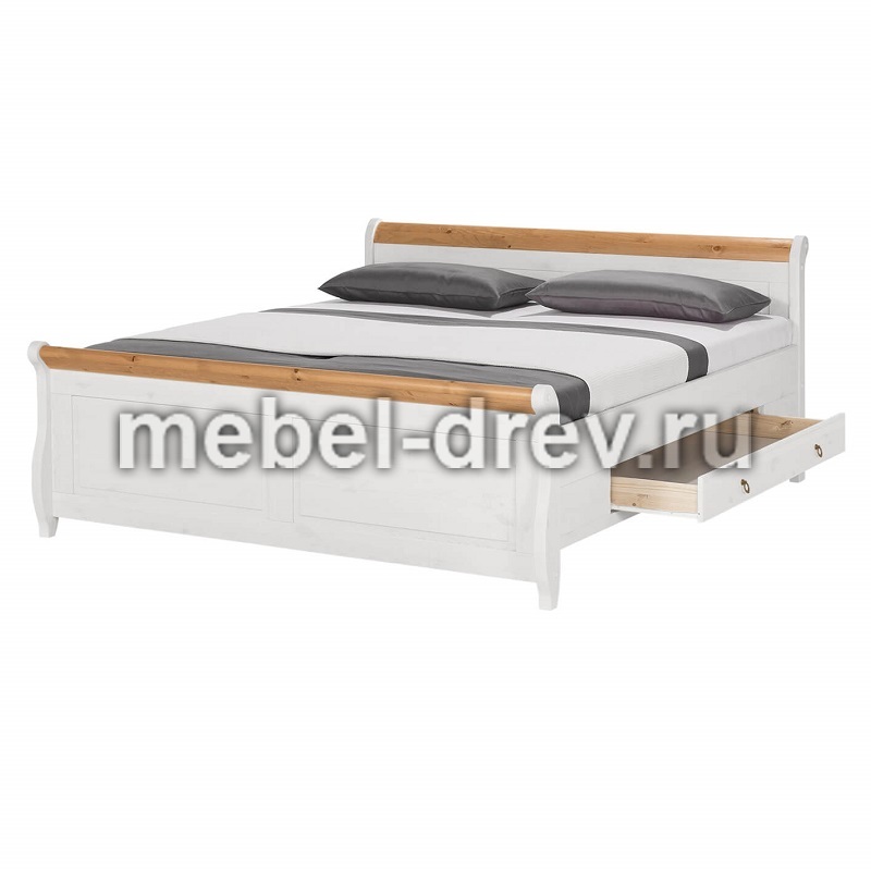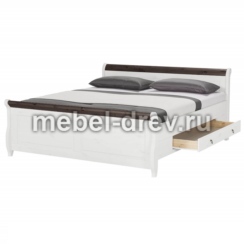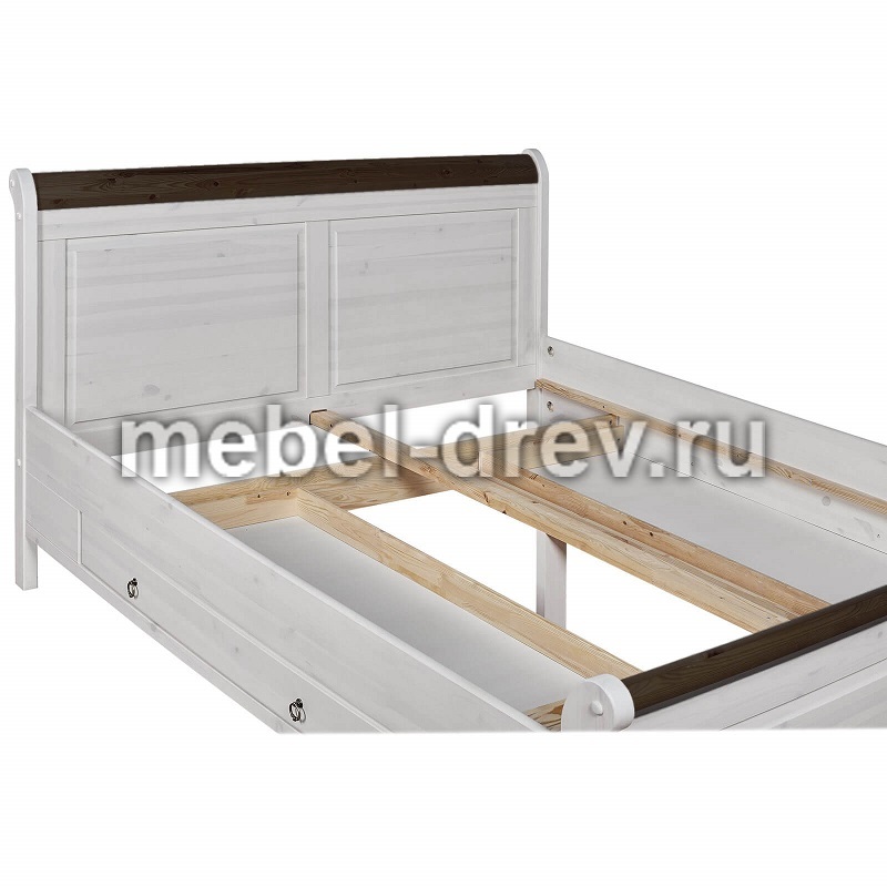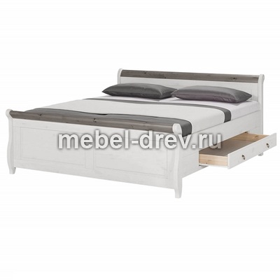 Двуспальная кровать с ящиками Мальта 140. Кровать сделана в стиле прованс из натурального дерева, массива сосны. Ящики для белья размещены с двух сторон кровати. Изделие окрашивается красками на водной основе, сохраняя натуральный вид древесины и ее экологическую чистоту. Превосходный дизайн, отличные качество и доступные цены от белорусской фабрики ММЦ.