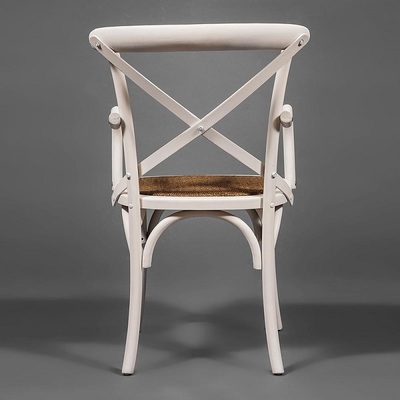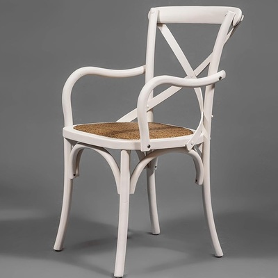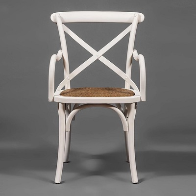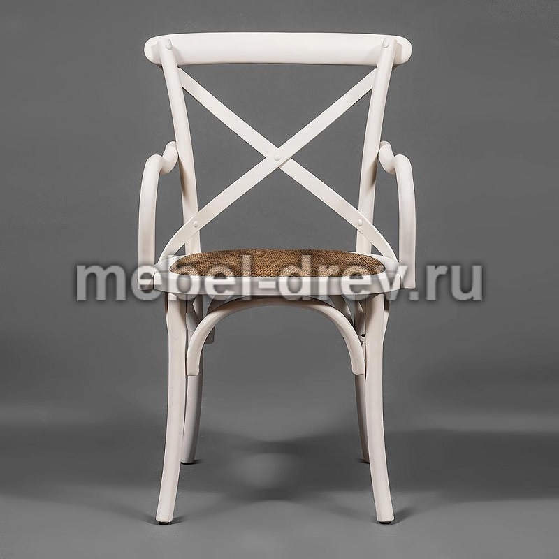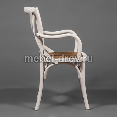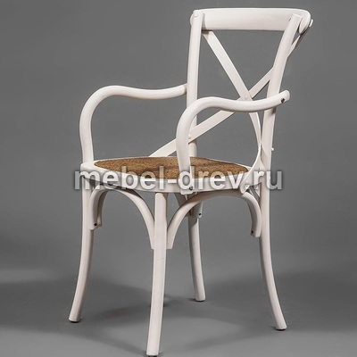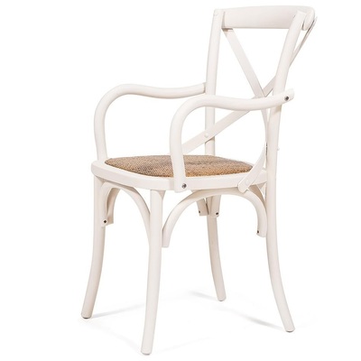 Элегантная белая мебель-стул с подлококтниками CROSS. Стул прочный, прослужит Вам долгие годы, не требуя специального ухода. Изготовлен из древесины березы, сиденье из натурального ротанга. Стул универсальный, предназначен как для дома, так и гостиниц, кафе, баров, ресторанов.