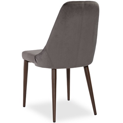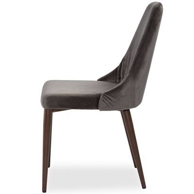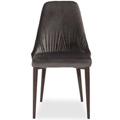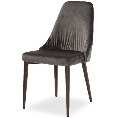 Стул Кампания от фабрики Pranzo подходит к интерьерам в стиле модерн и неоклассика. Мягкий стул, обитый мягким шелковистым велюром в двух цветах на выбор: благородный серый и глубокий синий. На спинке стула сделаны декоративные защипы, которые в виде "лучиков" идут от сиденья к верху спинки. Ножки из металла имитируют текстуру дерева орех и венге.