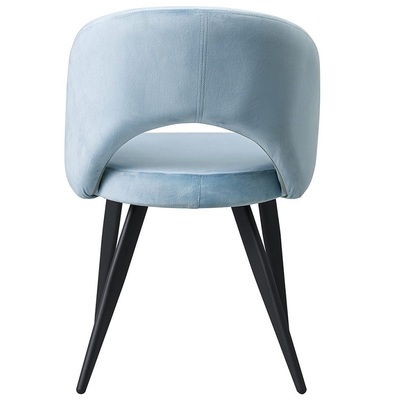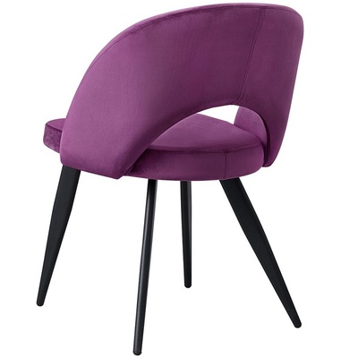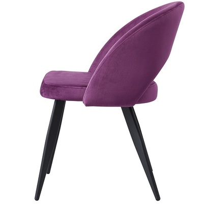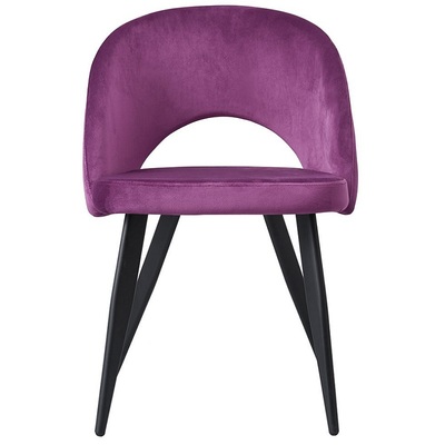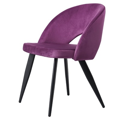 Современный стул с мягким сиденьем, для гостиной или кухни DC 9507. Каркас стула из окрашенного металла. У стула мягкая обивка из ткани пурпурной или голубой расцветки. Стул необычайно удобен благодаря округлой спинке, надежен и удобен в использовании. Подойдет по стилю к любому современному интерьеру, модерн и лофт.
