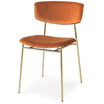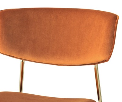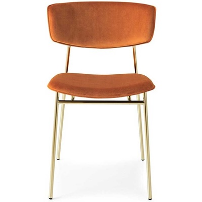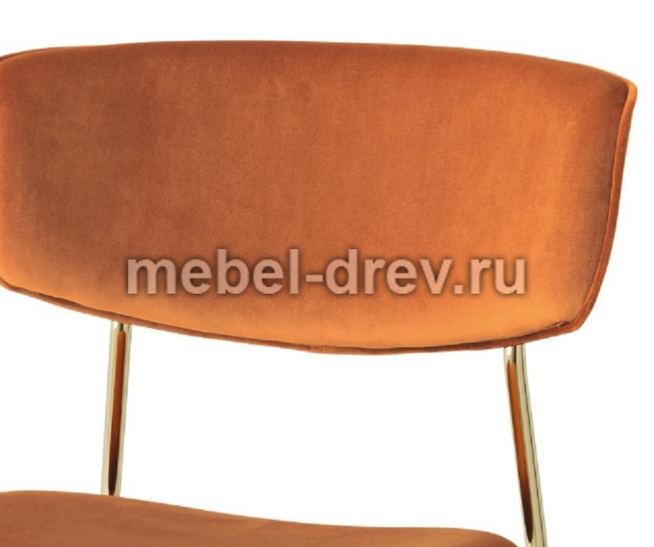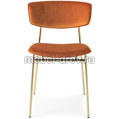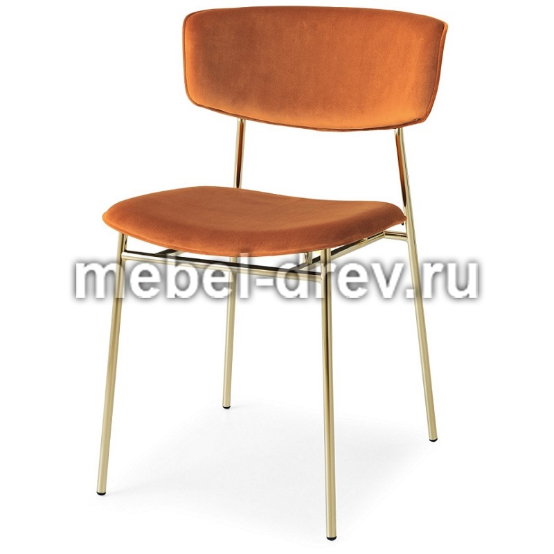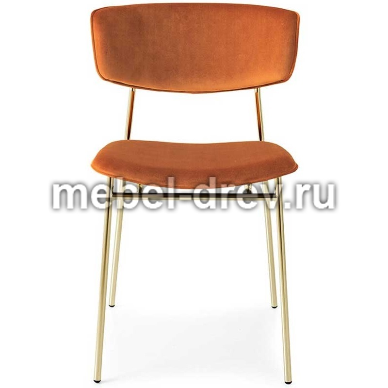 Ультрамодный стул для кухни или гостиной Fifties в стиле модерн или неоклассика. Металлический каркас с гальваническим покрытием "полированная латунь", обивка-велюр Venice красно-кирпичного цвета.